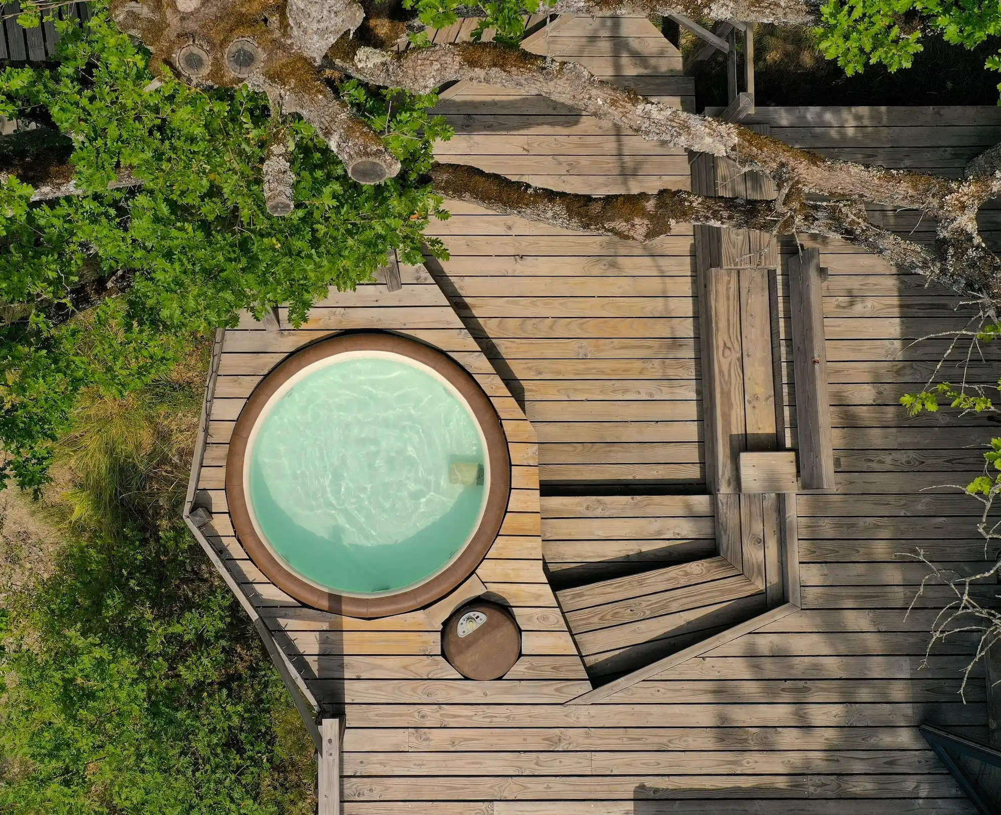 Vue sur les pins, vapeur légère, ciel ouvert… tout est pensé pour que vous puissiez vivre une parenthèse de chaleur et d’intimité, sans contrainte.
